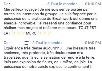 Si tu ne fais pas partie des contre indications il n’y a pas de danger à la pratique du breathwork. Nous te conseillons d’allumer ta camera pour pouvoir te voir lors de la séance et mieux te guider si besoin. Nous proposons toujours un temps de partage à la fin et si tu as besoin tu peux aussi nous contacter par mail après.
